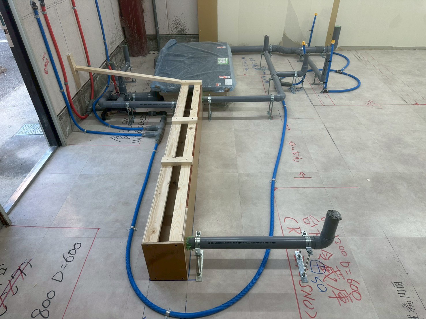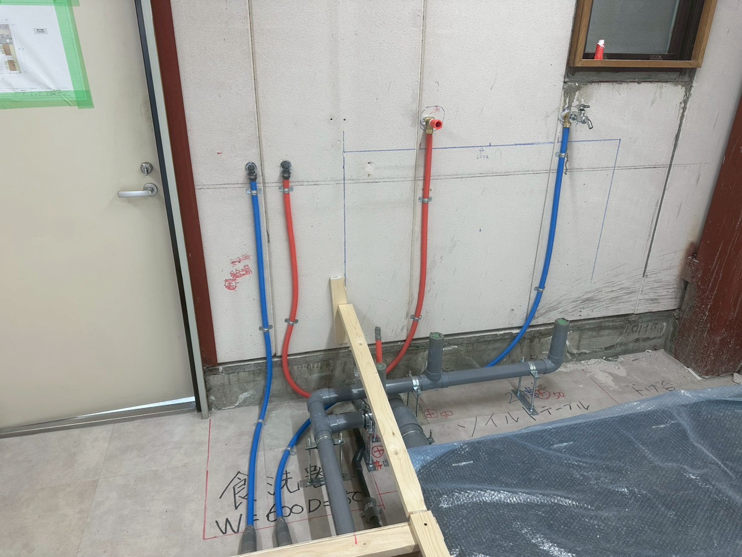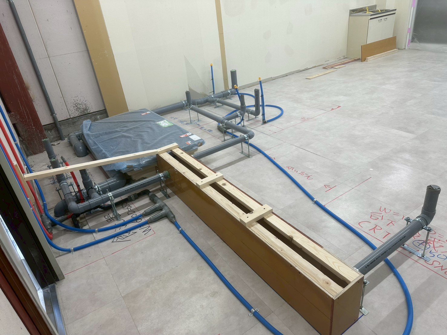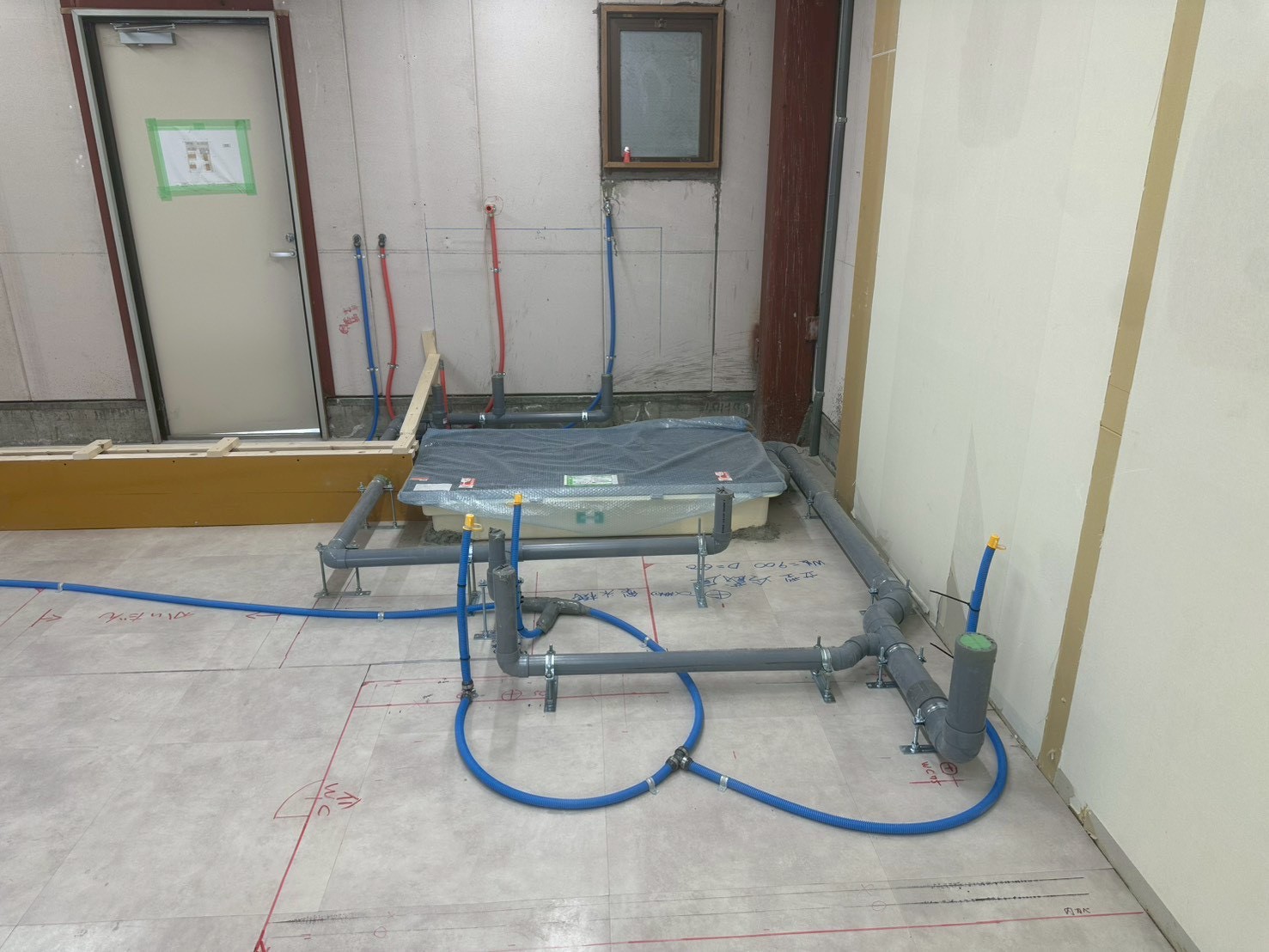 給水・給湯・排水 転がし配管・仕込み施工完了。