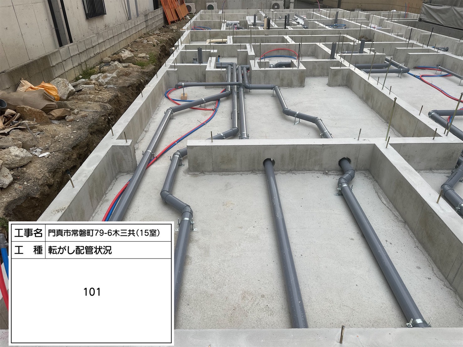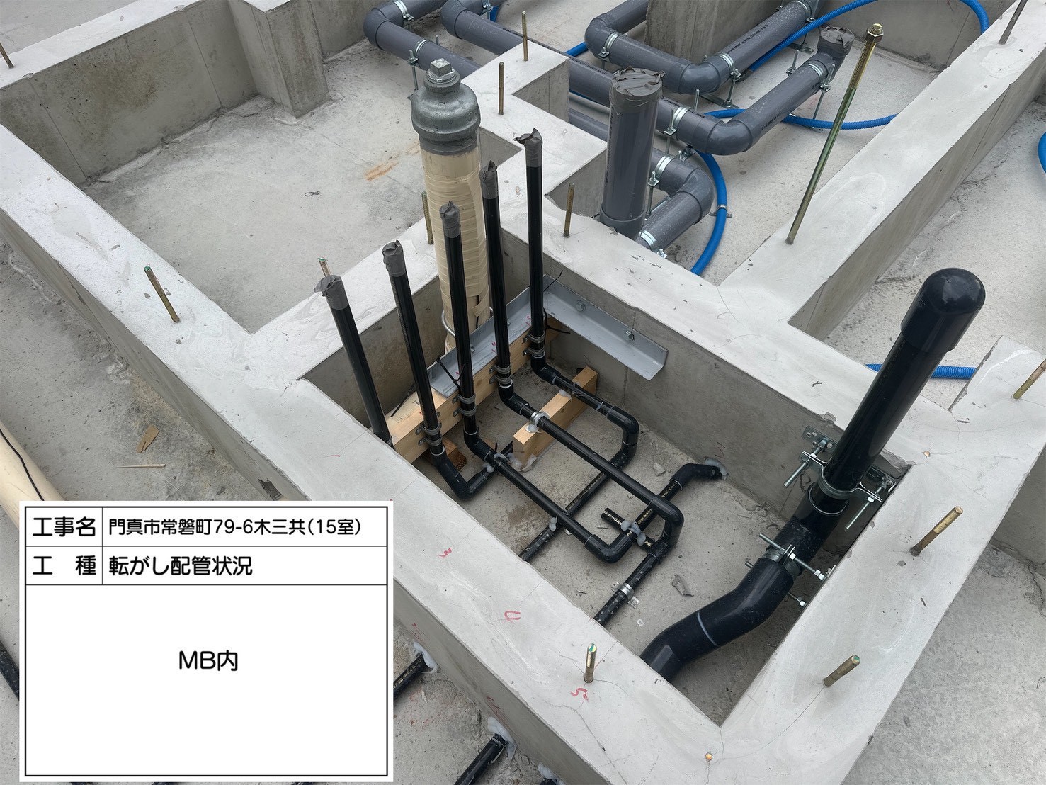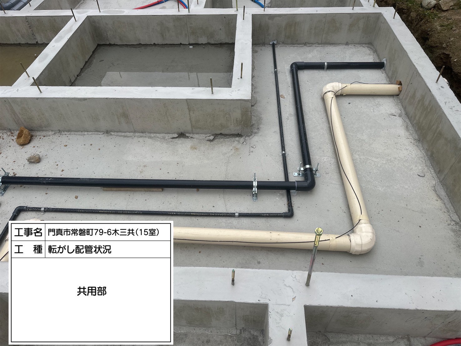 こちらは共用部の転がし配管状況です。