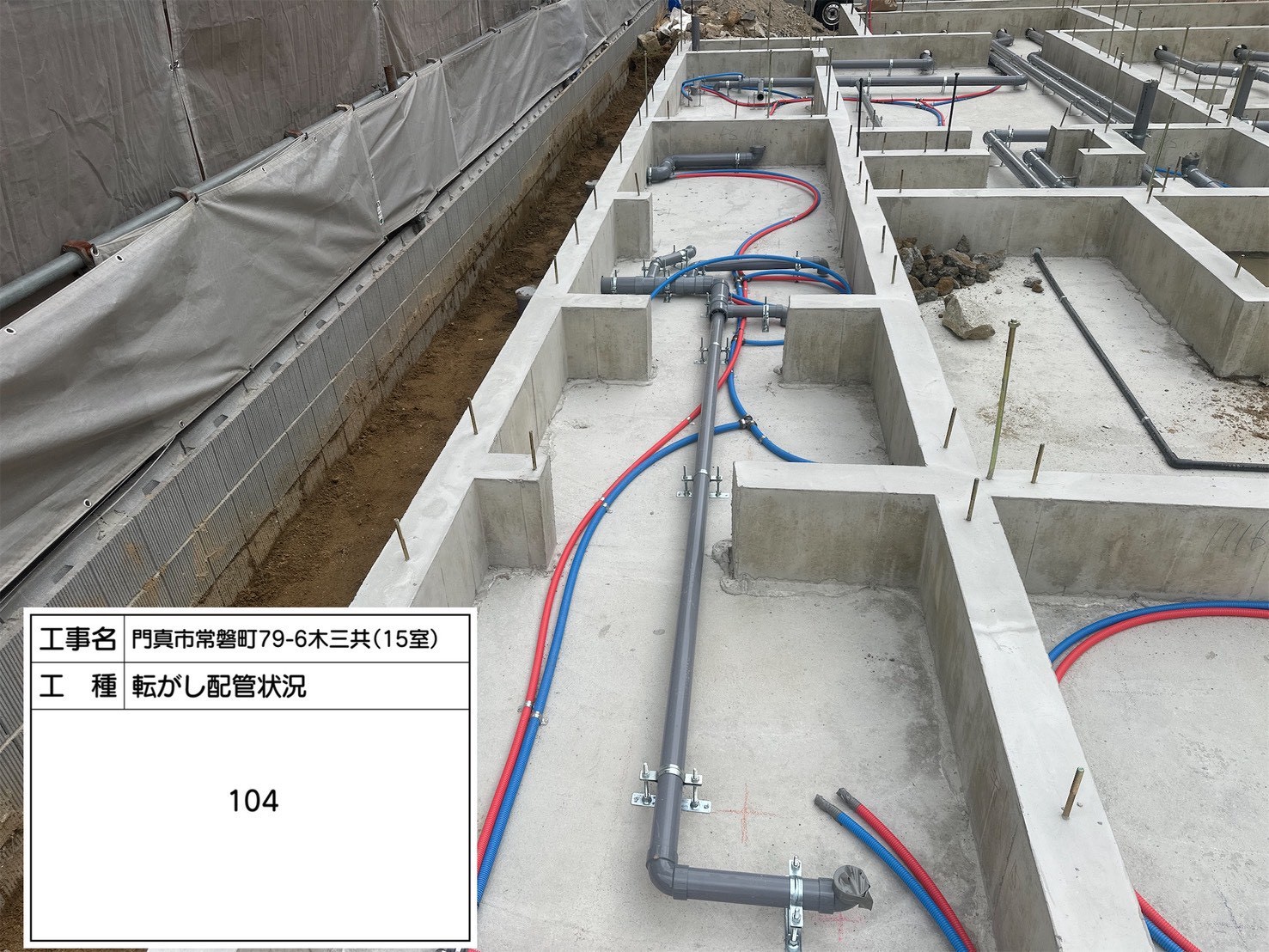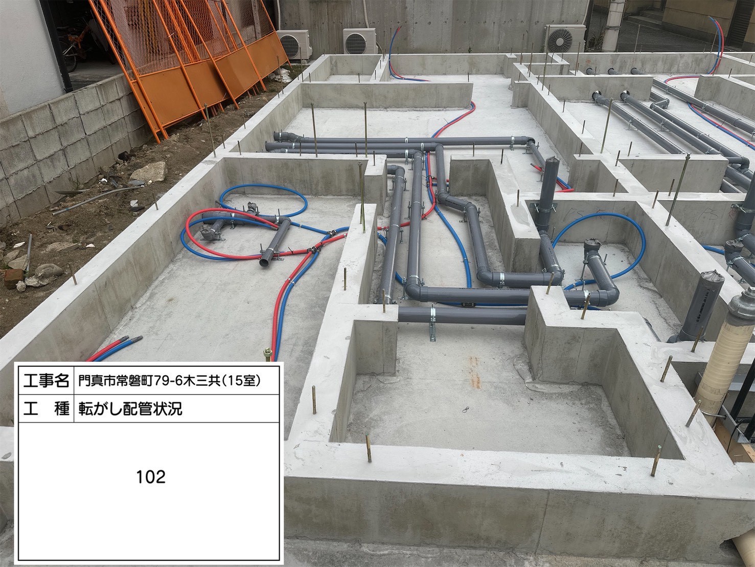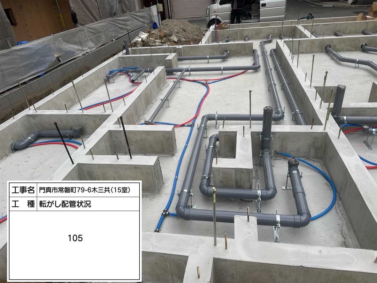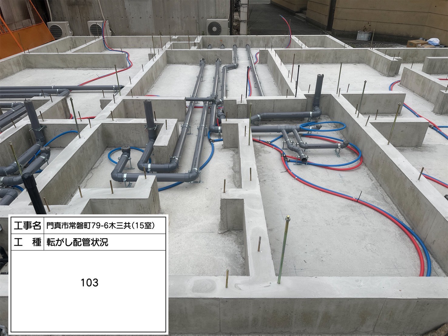 こちらは共用部の転がし配管状況です。